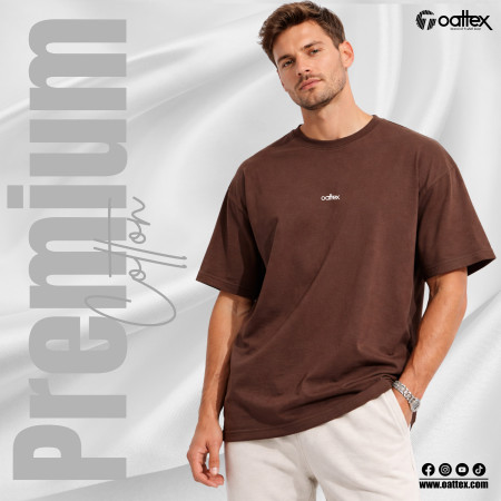 Band Name: Oattex. Product Type: Unisex Drop Shoulder T-shirt. Fabric: Cotton Fabric. GSM: 200-210+ GSM. Gender: Unisex. Size: M, L, XL. Colors: Coffee. Print: 3D High Density